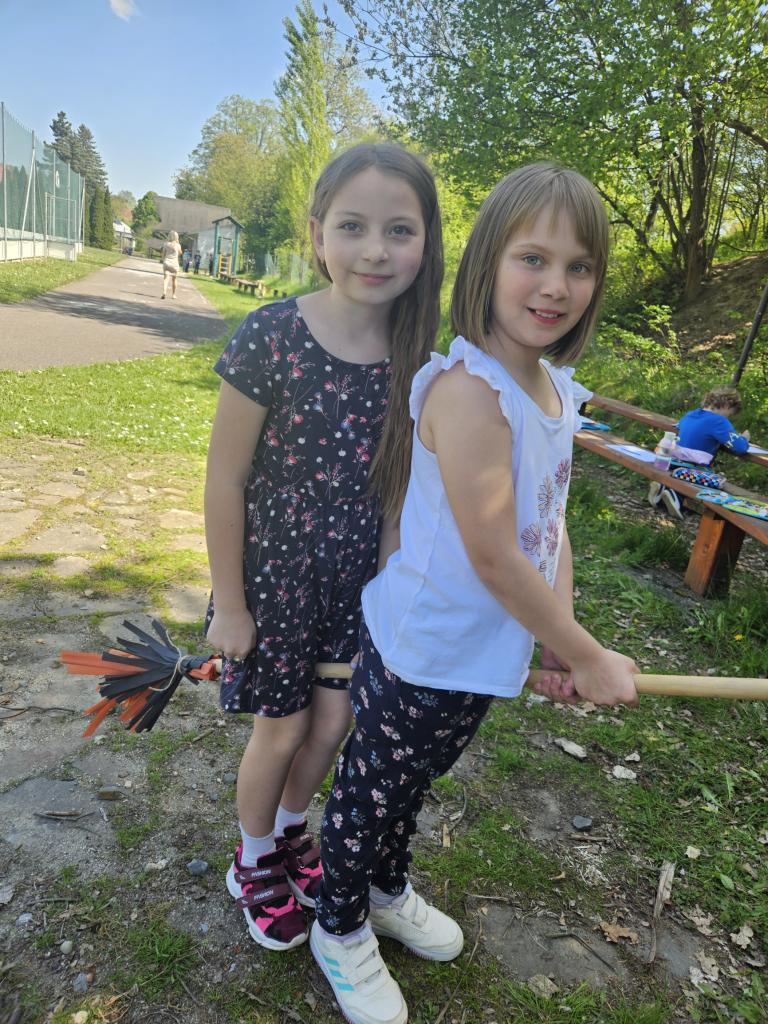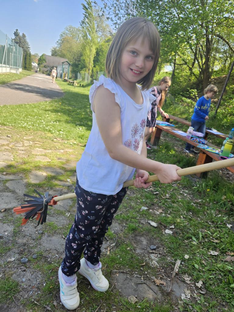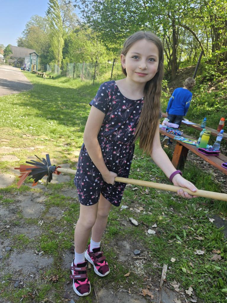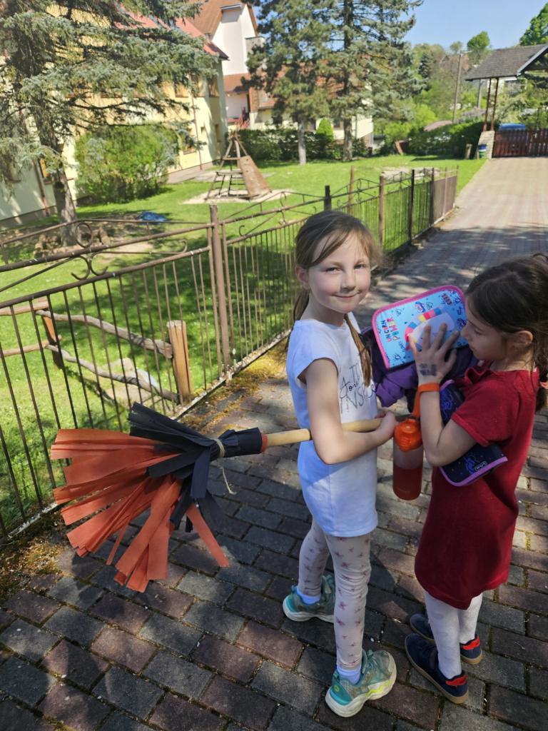 Ježibaba na koštěti, ráda straší malé děti. Čarodějnou zkouší moc, v pohádkách na dobrou noc.