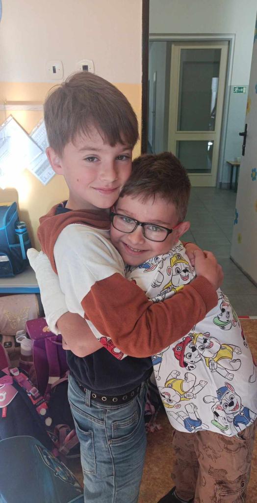 Přivítání našeho kamaráda zpět ve školní družině. :-)