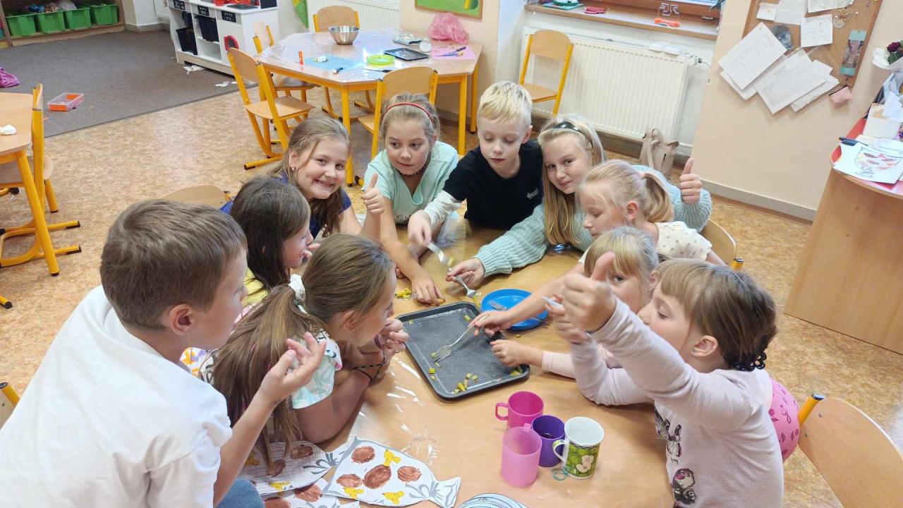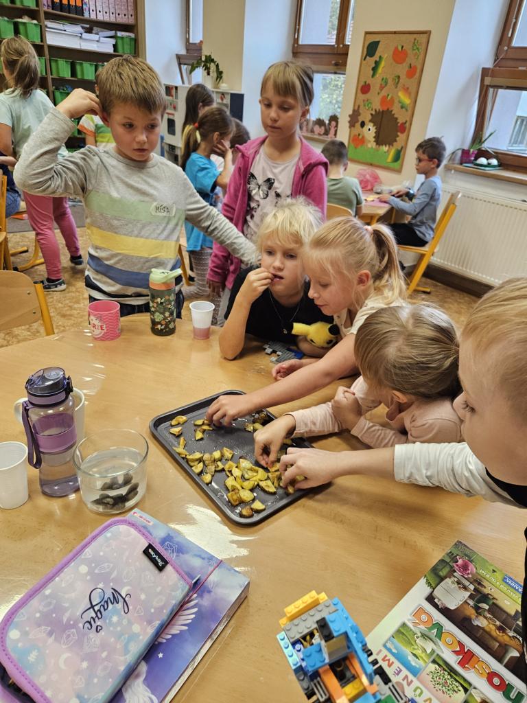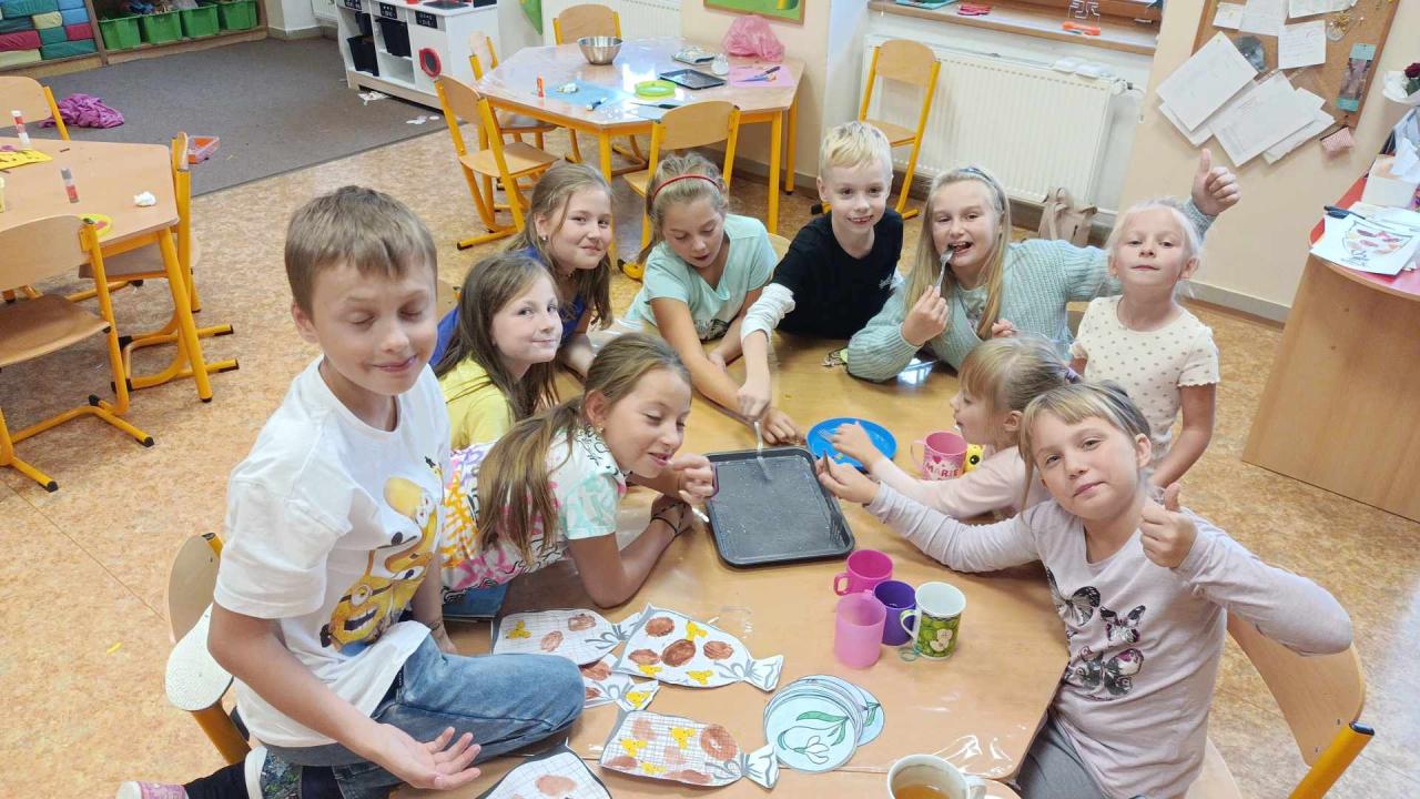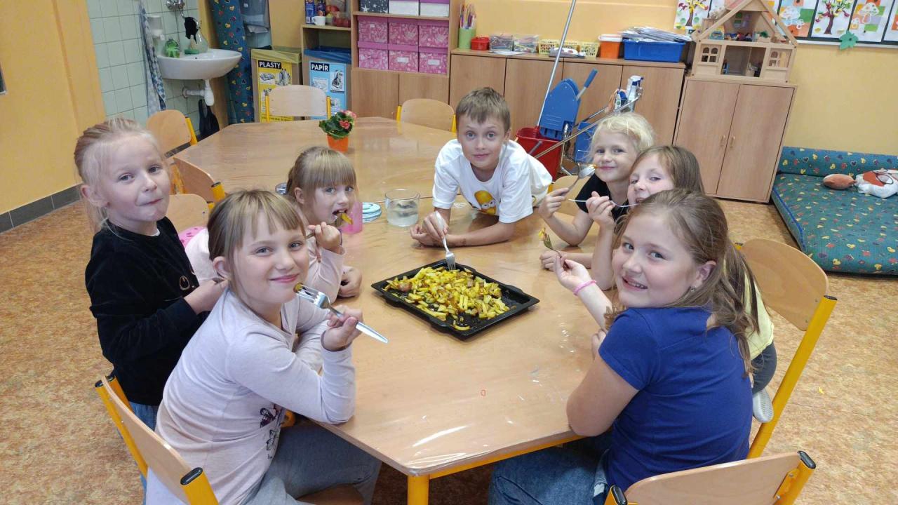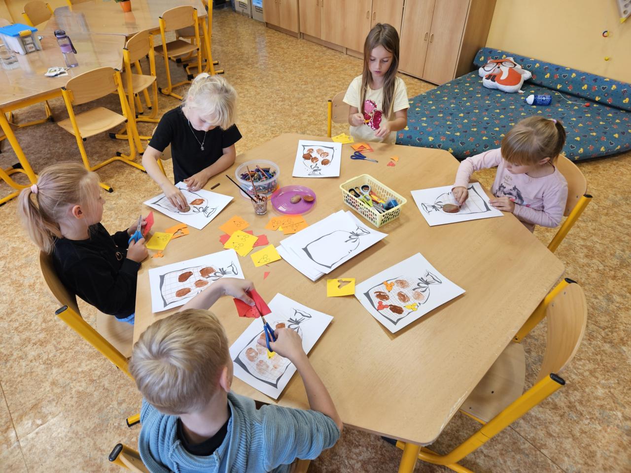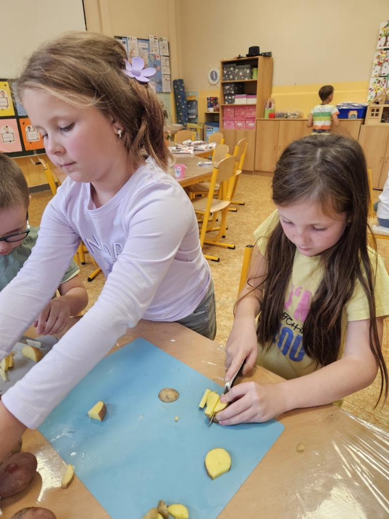 V úterý 24.9. proběhla ve školní družině bramboriáda. Holky a kluci z obou oddělení si společně vytvořili tiskátka a natiskli plný pytel brambor. Následně jsme si upekli brambory, na kterých jsme si moc pochutnali. :-)