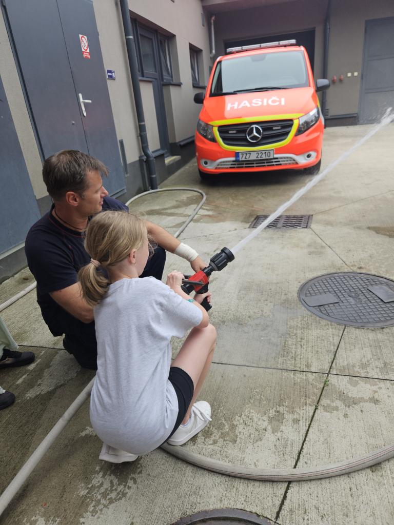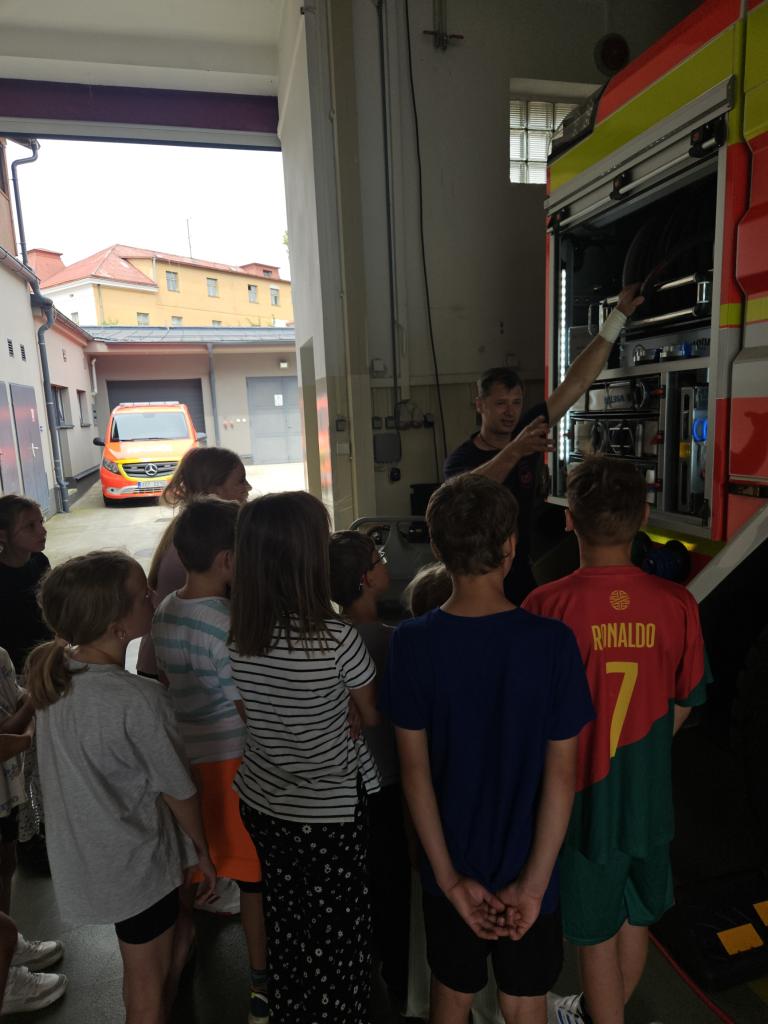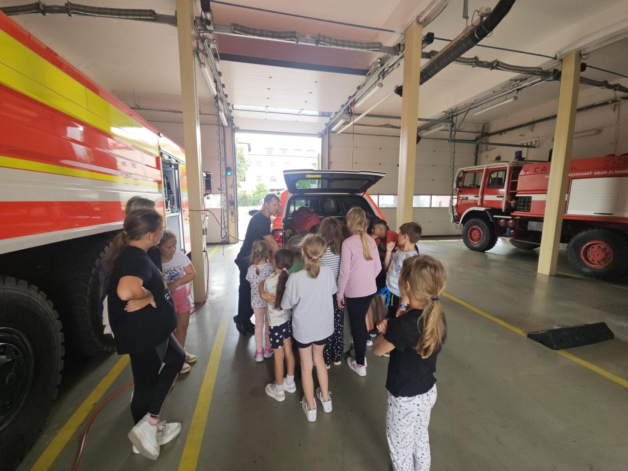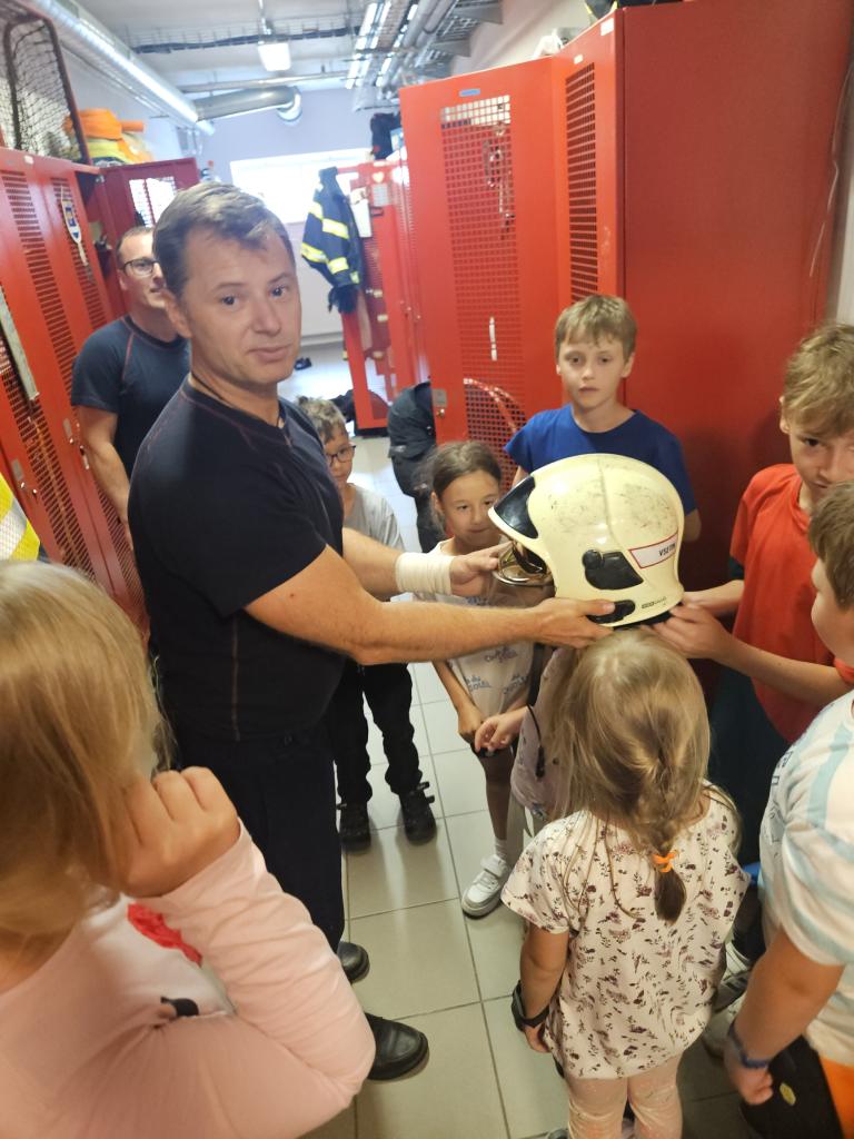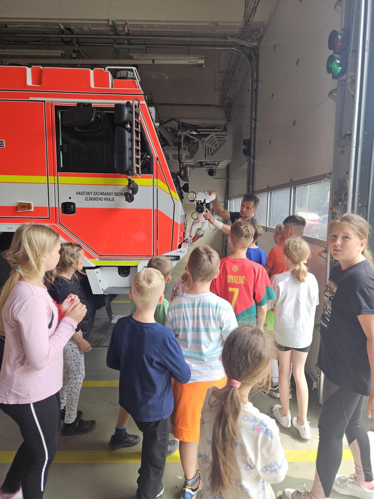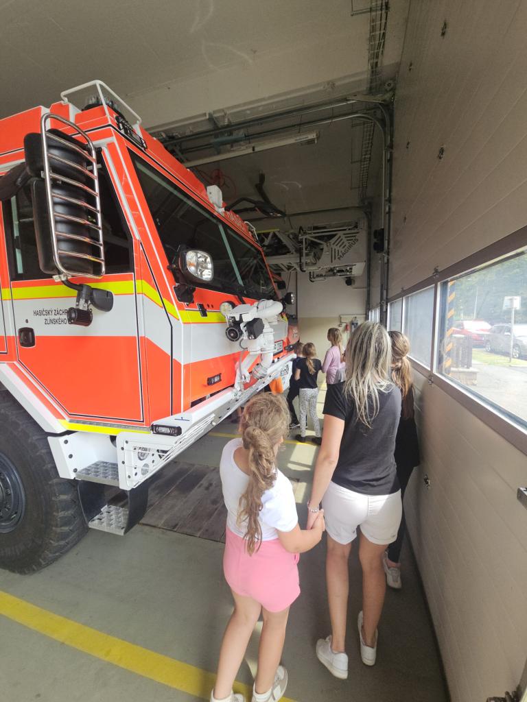 Poslední táborový den jsme navštívili dětské zábavné centrum ve Vsetíně a HZS Zlínského kraje, stanici ve Vsetíně, kde nás provázel profesionální hasič pan Marek Herzán, který děti provedl celou stanicí, ukázal jim techniku, vozy a zákulisí těžké práce profesionálních hasičů. Popovídal nám o hašení požárů, ochraně zdraví, prevenci, zmínil spolupráci se záchrannou službou. Svým nadšením a elánem motivoval mnohé chlapce, ale i děvčátka z naší družiny. Děkujeme všem táborníkům za krásný týden plný zážitků a chválíme za moc hezké chování během celého tábora.